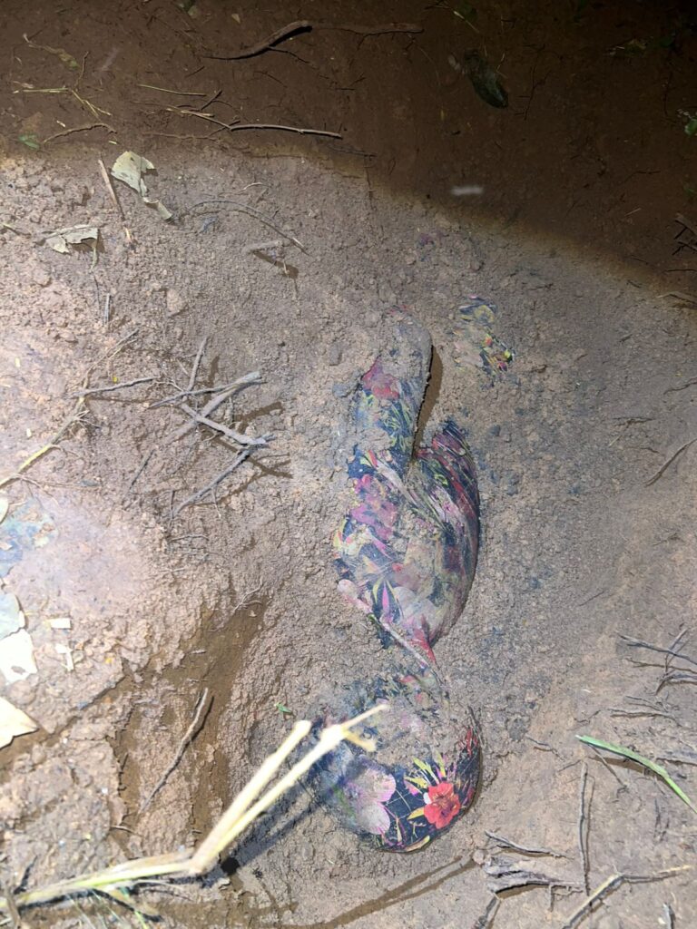 Durante as buscas, o corpo foi encontrado envolto em um lençol e enterrado de forma superficial. Devido ao estado em que se encontrava, não foi possível confirmar oficialmente a identidade da vítima no momento. No entanto, a mãe relatou que, pelas características físicas e estatura, há grande possibilidade de se tratar de seu filho.